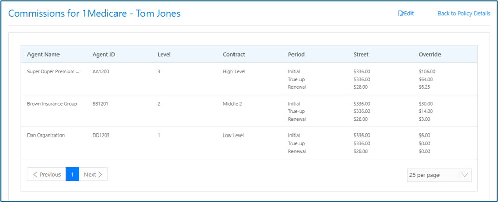 The Commission Distribution holds the hierarchy of Agents and their associated rates for a Policy. It is set in a Policy during close of its first Commission Cycle or if it is edited and saved. When the system creates a Commission Distribution for a Policy, including MEDICARE Policies, it will consider any Alternate Contracts or Alternate Upline values from Custom Settings. Commission Distributions can also be created or updated with the import ‘Policy Commission Distribution MAPD & PDP.’