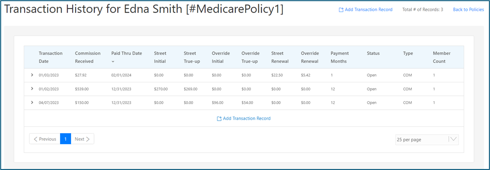 - Payment Months – number of months represented by the payment. A full year it would be 12 months, and a Policy started in the middle of the year would be 6. Note: this field and the previous one Paid Thru date are not used in the commission calculation for MEDICARE The street/override first that are populated and the amount in them determines the amount paid. They are helpful for reporting and may be used for future enhancements.