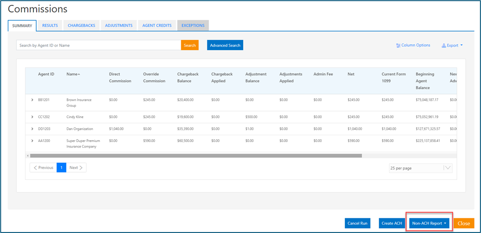 There is a Non-ACH Report that will display the Net Payable amount for any Agents that are not to be paid via ACH.