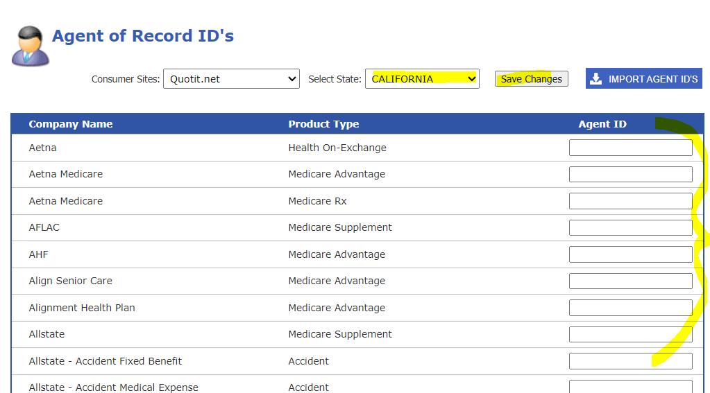 Entering your Agent of Record IDs Entering your IDs ensures you receive appropriate credit for your applications. You can find more information here: Settings Overview