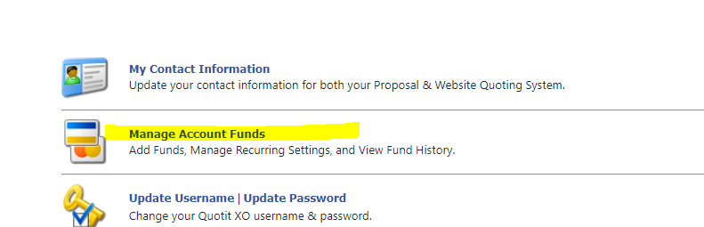 You can fund your Leads Wallet by going to My Account in the upper right hand side of Quotit.