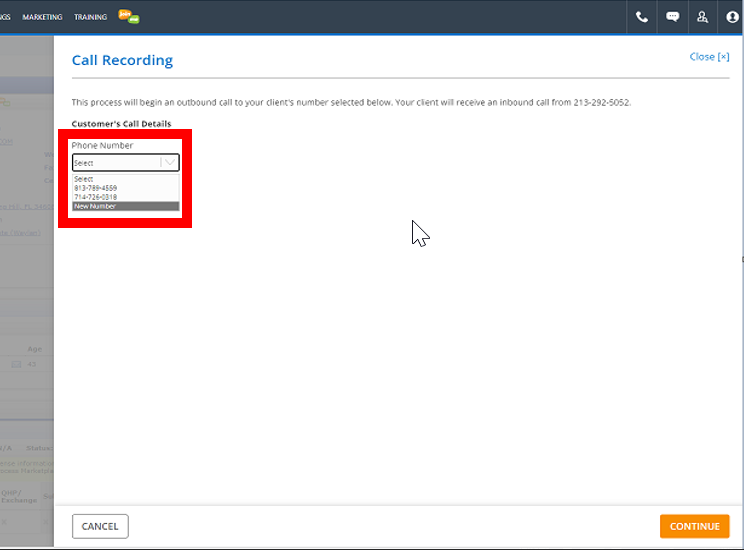 - Once you have selected the number you wish to dial, click the ‘Continue’ button to dial the selected number.