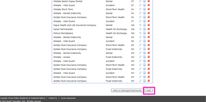 - This brings us to the Online Application Settings Page. To add a Carrier/product, scroll all the way to the bottom oof the page and click the “Add” button.
