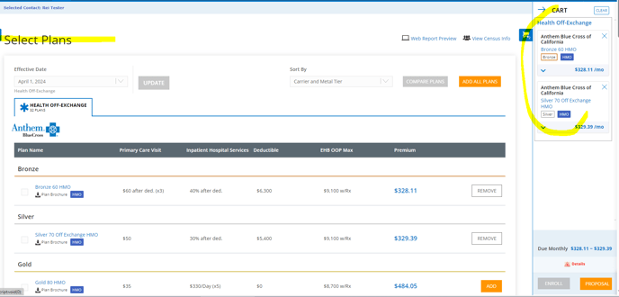 One you have gotten to the Select Plans page of a quote and have added the plans to the cart, we can then move to the next step, which is emailing it.