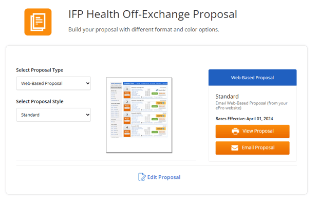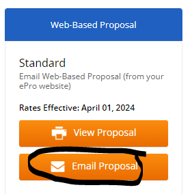 Once you have picked the Proposal Type and the Proposal Style on the left hand side, you can email the proposal.