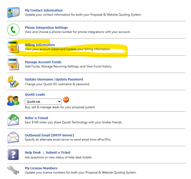 This will go over updating billing information for the Quotit system. And where to see Transaction History