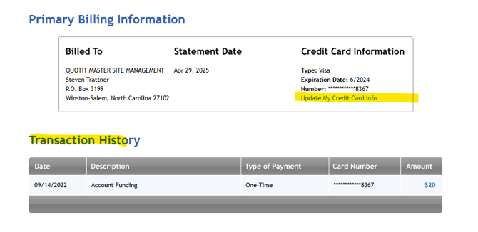 How to Update Billing Info or See Transaction History in the Quotit Portal